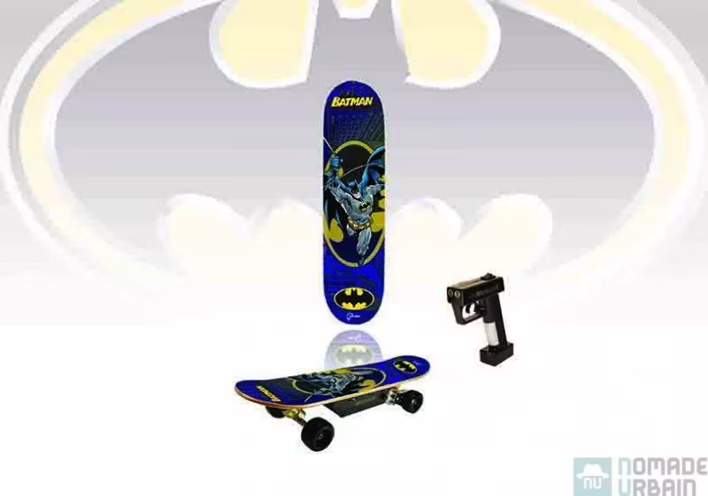Ce petit skate a de la gueule avec son visuel 100 % Comics. Il arbore tous les symboles de l’homme chauve-souris, sans pourtant en faire trop. Le moteur électrique placé sous la planche n’est pas des plus esthétiques, mais il faut savoir ce que l’on veut.