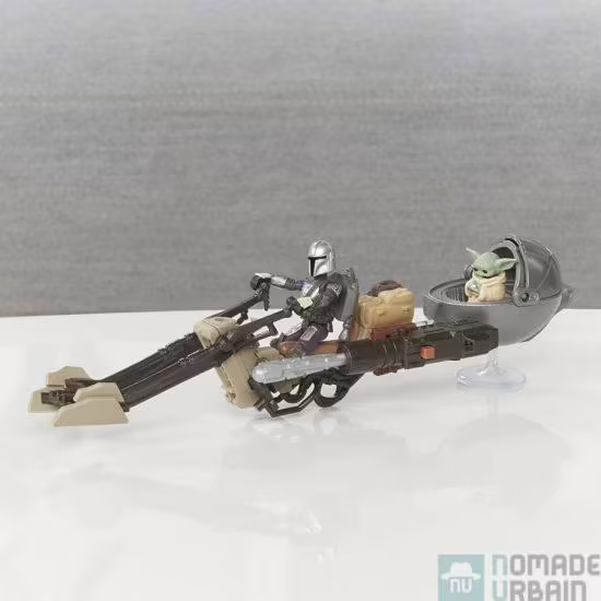 Les filles et les garçons vont adorer faire semblant de parcourir les déserts avec la figurine et le véhicule The Mandalorian Battle for the Bounty qui inclut un lance-projectile amovible. La figurine du Mandalorien de 6 cm a de multiples points d’articulation et enfin, comment résister, Baby Yoda est aussi inclus !
