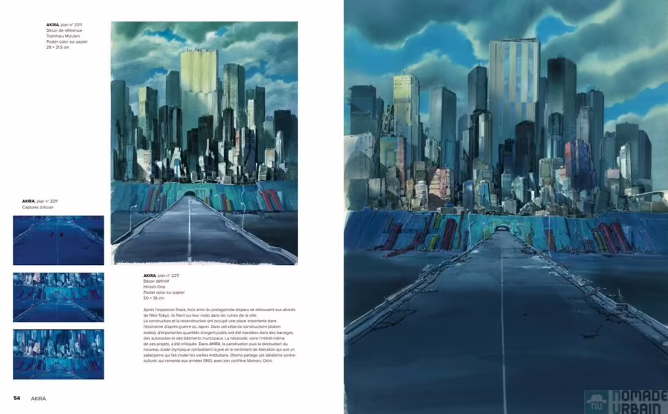 Ce volume offre une vue d’ensemble inégalée de ces arènes cinématographiques – Akira, Ghost in the Shell, Evangelion– à travers des peintures de fond originales. A cela s’ajoute des storyboards, des ébauches, des sources d’inspiration et des extraits de films. Il aura fallu 10 ans à Stefan Riekeles pour rassembler, ces images rares et exceptionnelles. Qui étaient souvent jetées ou réutilisées dans le processus de fabrication. Parti à la rencontre de critiques, d’historiens et bien sûr d’artistes légendaires tels que Mamoru Oshii ou Katsuhiro Otomo. L’auteur propose pas moins qu’un trésor pour les futures générations d’artistes, d’illustrateurs, d’architectes, de designers, de créateurs de jeux vidéo et de rêveurs