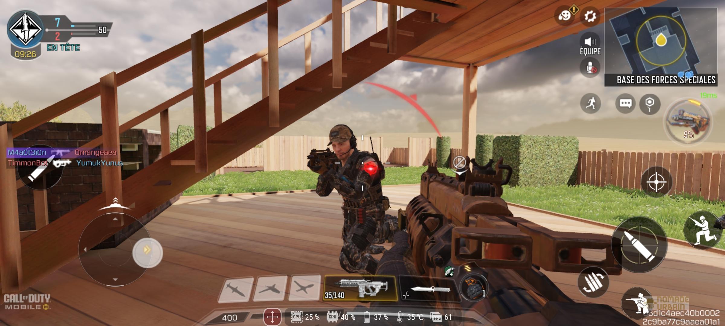 Dans Call of Duty Mobile, 120 FPS sont atteints en qualité moyenne, et le framerate reste stable à 90 en qualité maximale,.