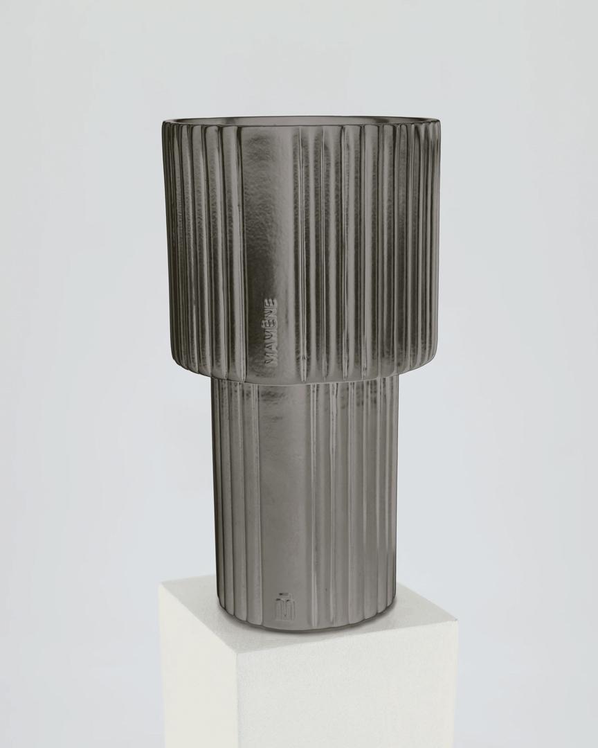 Le format Lampe, plus imposant, atteint 1 kg et offre plus de 90 heures de combustion. Seules 40 pièces sont disponibles pour cette version. Dans les deux cas, la lumière joue un rôle central. Une fois allumée, la flamme vient révéler les volumes et adoucir la matière sombre. Éteinte, la bougie conserve sa dimension graphique et sa présence sculpturale.