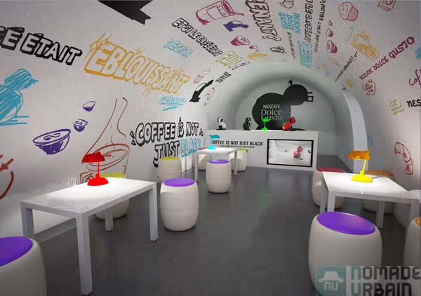 La marque lance un lieu éphémère d’expérience autour du café de l’art et de la gourmandise. Du 1er au 31 décembre, au 16 rue Saint-Merrie à Paris (de 12h30 à 19h30), Nescafé met en scène ses machines avec en vedette la Melody revisitée par 16 artistes Street Art. Le lieu propose des ateliers créatifs pour apprendre à tricoter et rhabiller machines et tasses à café ou encore la personnaliser avec des stickers ou des feutres.