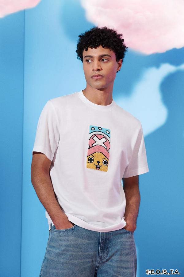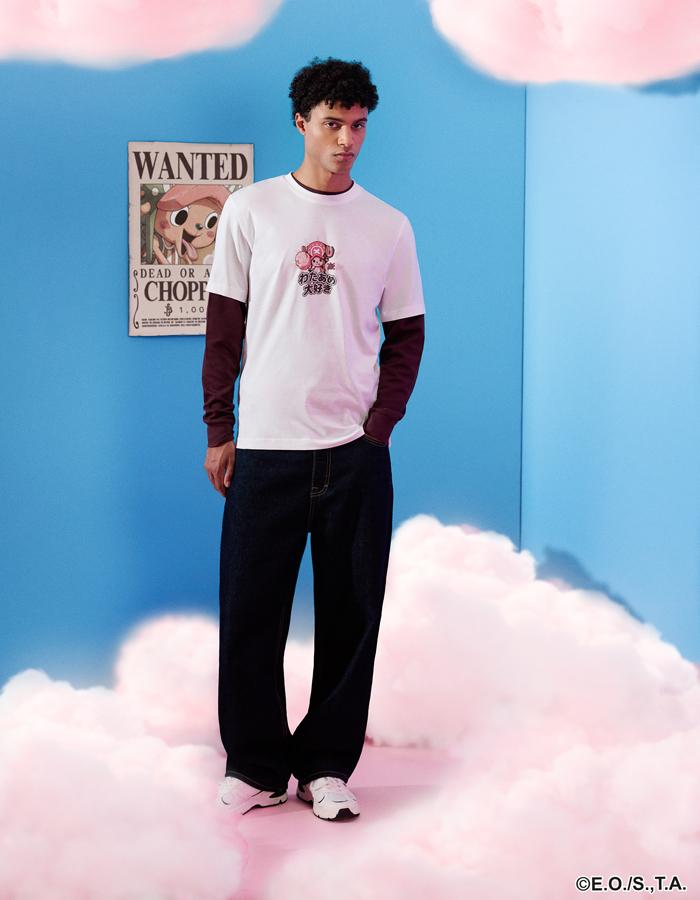 Si One Piece devait tenir en un personnage pour toucher fans de la première heure et nouveaux venus, ce serait Chopper. Le petit renne médecin cumule une reconnaissance immédiate et une iconographie très forte. Son chapeau à croix bleue, ses sept formes de transformation, son goût pour la barbe à papa : tout cela constitue une matière visuelle dense. Celio l’a bien compris. Pour sa collection Celio x One Piece Chopper printemps 2026, conçue avec Toei Animation Europe, chaque pièce puise directement dans ce qui fait le personnage.