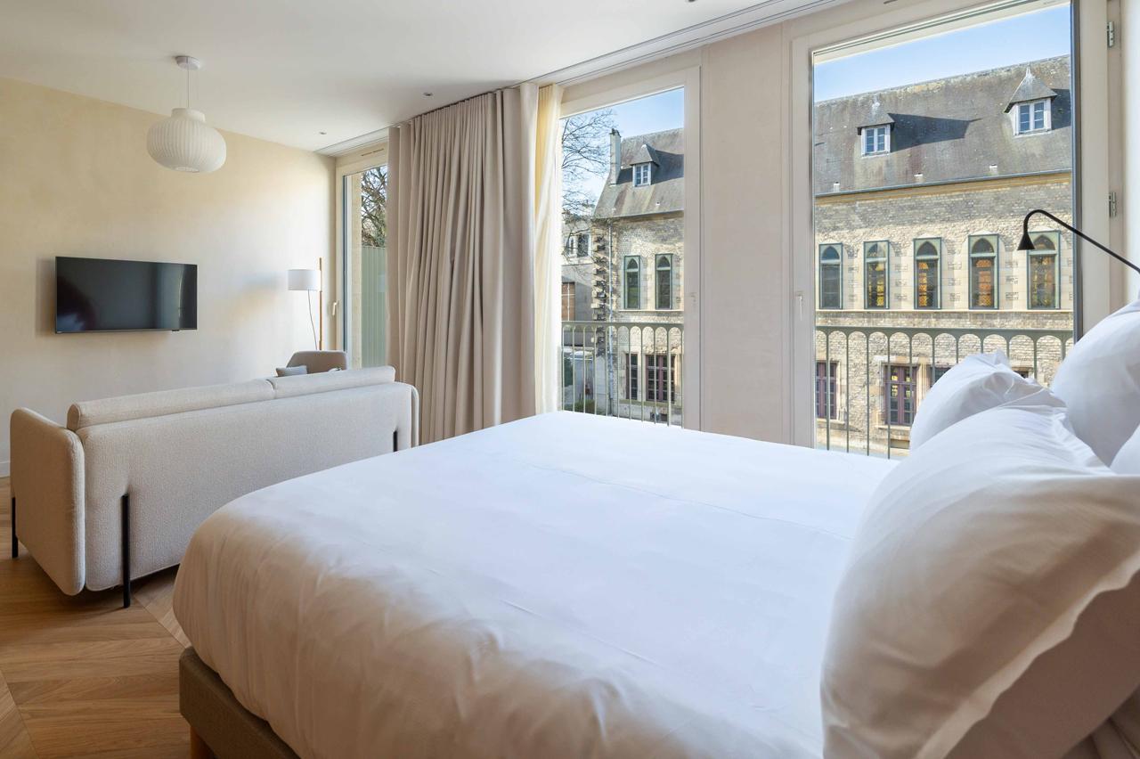 Les chambres se déclinent en quatre catégories, toutes orientées sur le cloître historique de la Demeure des Comtes de Champagne. La plus petite, la Chambre Cosy de 21 m², propose un lit King-size et une douche à l’italienne. La Chambre Supérieure de 25 m² s’ouvre quant à elle sur le jardin intérieur végétalisé. Elle est en outre accessible aux personnes à mobilité réduite.