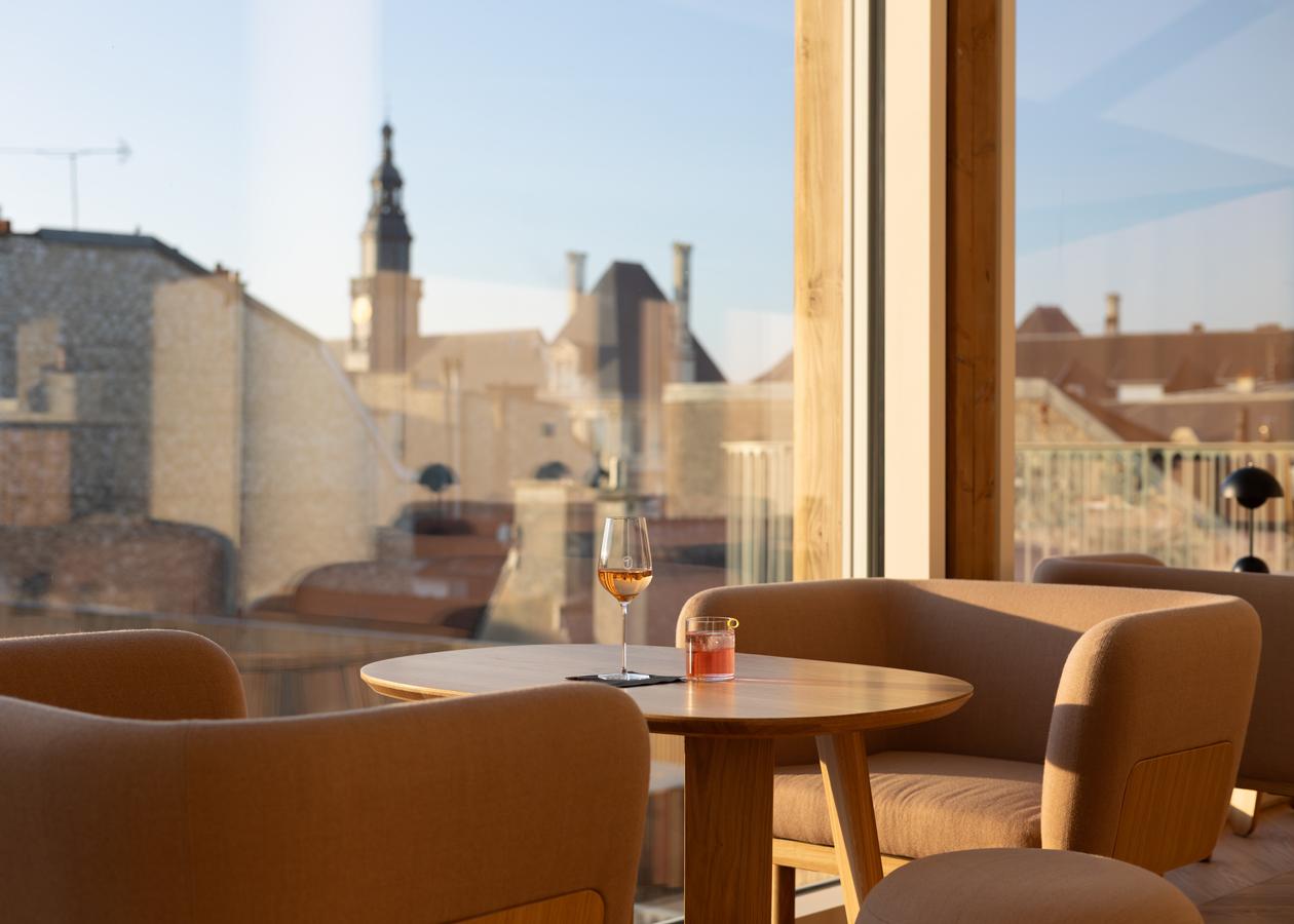 Reims attendait une adresse comme celle-là. Le 27 février 2026, la famille Thiénot a ouvert Le N°3 rue du Marc, en plein centre historique. Or, à la différence des autres Maisons de Champagne, Thiénot a fait le choix de la ville. Les caves occupent le sous-sol, l’hôtel les étages, le bar face à Notre-Dame le troisième. Le tout se trouve à dix minutes à pied de la gare.