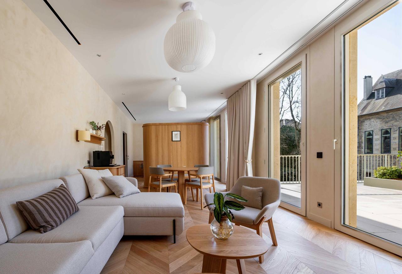 C’est pourtant la suite de 60 m² qui incarne le mieux la philosophie du lieu. Prolongée par une terrasse privative, elle offre de l’espace et du silence, sans ostentation.