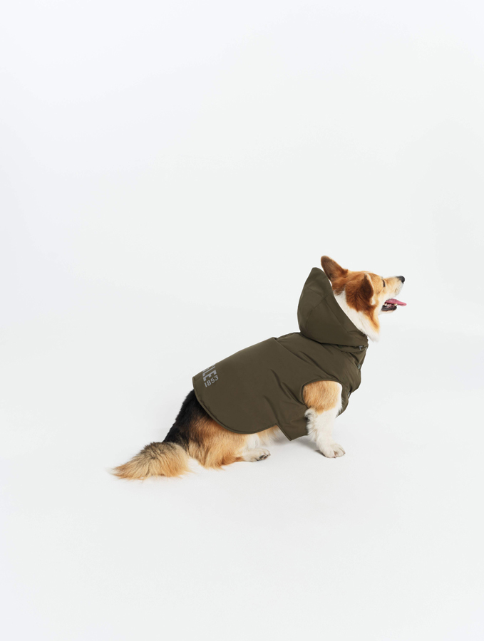 Elle cible les chiens les plus frileux. Son matelassage en Repreve, une fibre issue de matériaux recyclés, offre un apport thermique sans alourdir. Les découpes techniques suivent les mouvements de l’animal. Les pattes avant glissent naturellement dans les ouvertures prévues à cet effet. La capuche reste discrète, tout en apportant une protection supplémentaire.