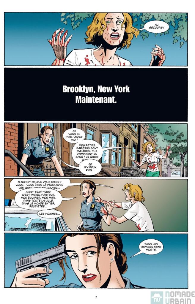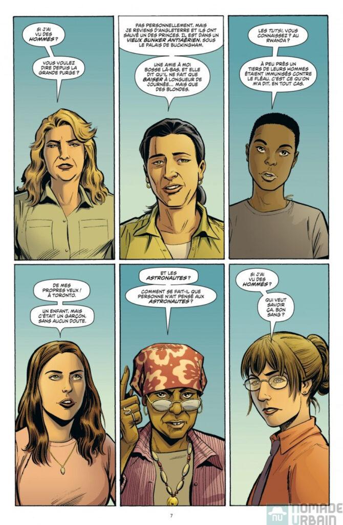 L’humanité va disparaître, en une journée l’ensemble des mammifères maux meurent sans explication. Le monde est aux mains des femmes pour le meilleur et pour le pire. Seul survivant masculin Yorick qui vient juste de faire sa demande en mariage à sa petite amie Beth.