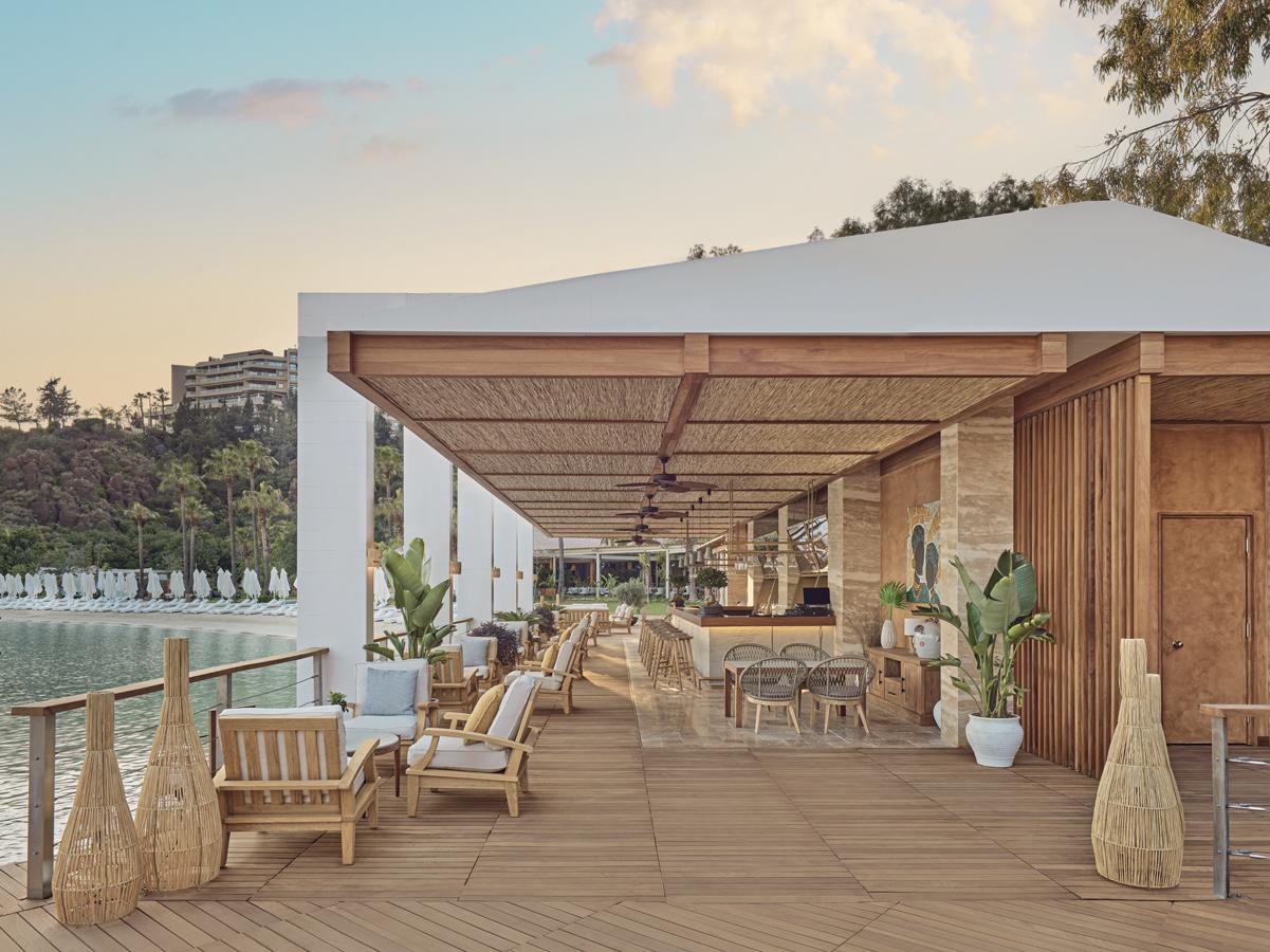La Guérite occupe la face la plus solaire et la plus festive de la baie. Le restaurant aligne daybeds blancs, palmiers, vues mer à 360 degrés, tapas, fruits de mer et musique jusqu’au coucher du soleil. Plus tard, la Lobby Terrace et Green Hill prennent le relais avec des cocktails signés avec le mixologue italien Giancarlo Mancino.