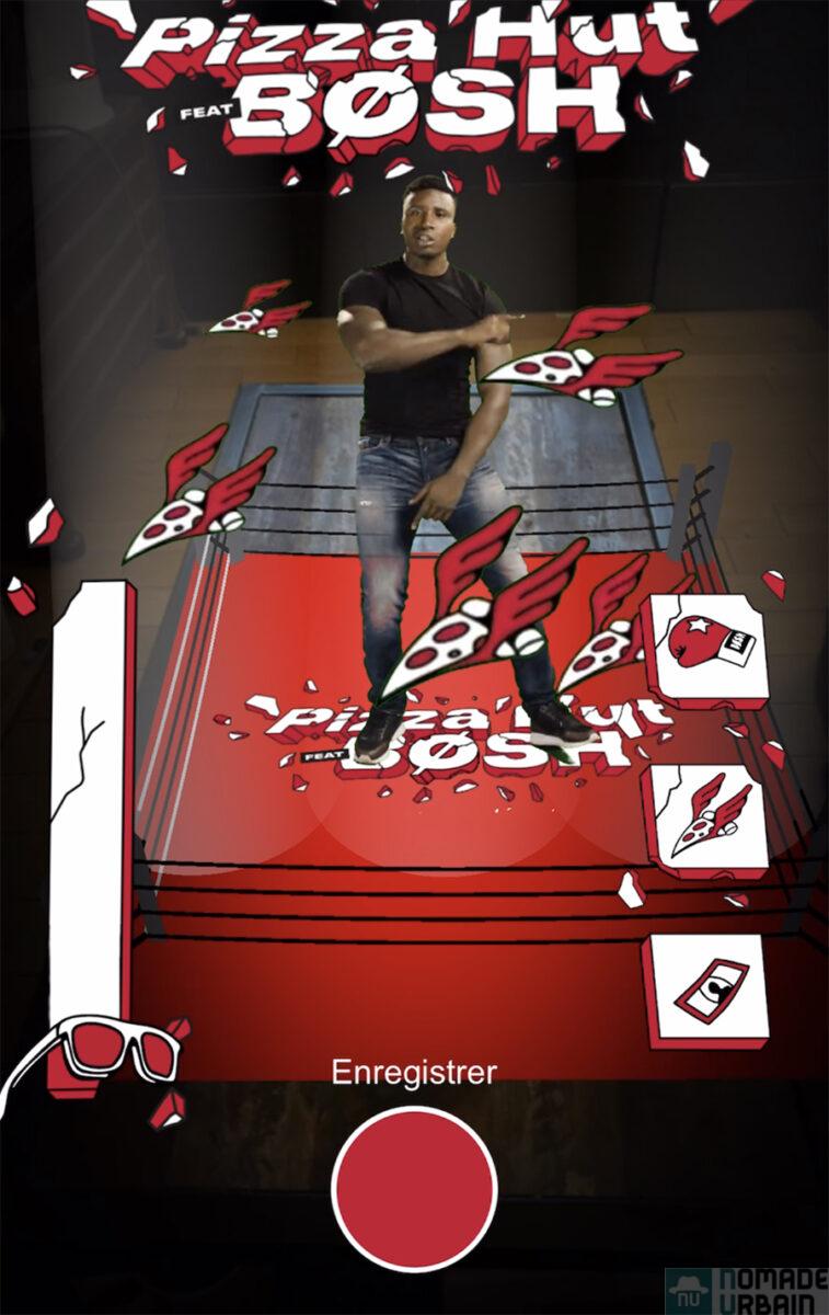 Rappeur star, célèbre pour son titre « Djomb », Bosh imagine une pizza à laquelle s’ajoute un mini live en Réalité Augmentée avec la Bosh X Pizza Hut.