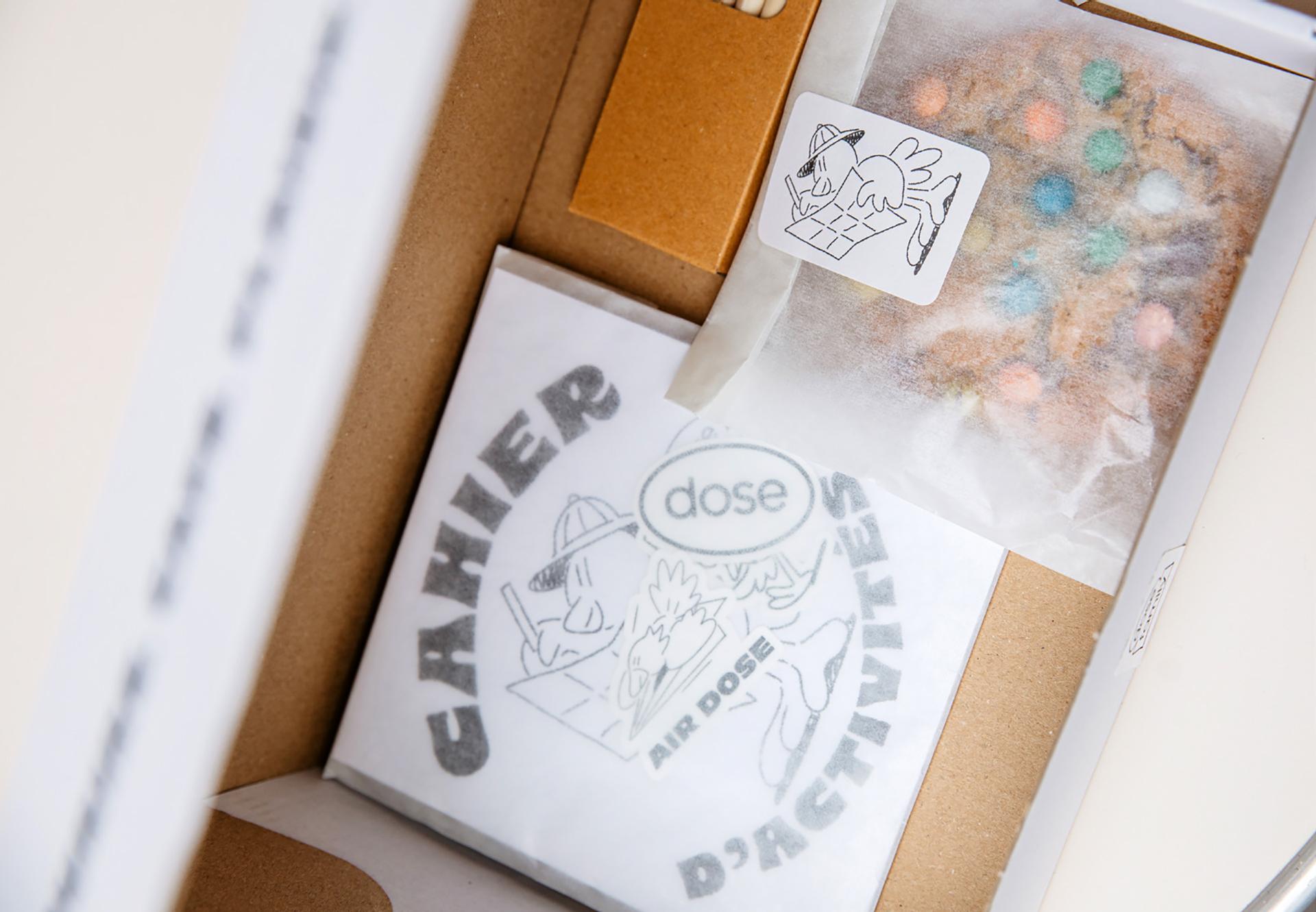 La formule se veut simple et efficace. Les enfants choisissent un babyccino ou une grenadine, croquent un “cookids” un maxi cookie moelleux garni de billes de chocolat colorées — et repartent avec un carnet d’activités illustré par Jean André. L’artiste n’est pas un inconnu pour la maison. Avant la collaboration, il traînait déjà son carnet dans le café Dose des Batignolles. Dix ans plus tard, il signe une création sur-mesure pour cette formule goûter. L’idée : transformer la pause sucrée en moment créatif.