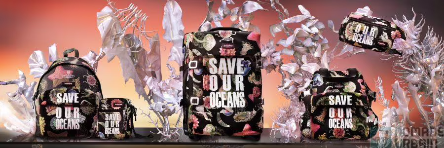 Les océans reçoivent chaque minute 5 tonnes de déchets plastiques, pour un total de 8 millions de tonnes annuel. Un fléau qui se matérialise par de véritables continents de plastique se formant au milieu des océans. Ce qui a motivé cette collection capsule Eastpak x Vivienne Westwood. Chaque création a été réalisée à partir de bouteilles en plastique qui polluent chaque jour nos océans.
