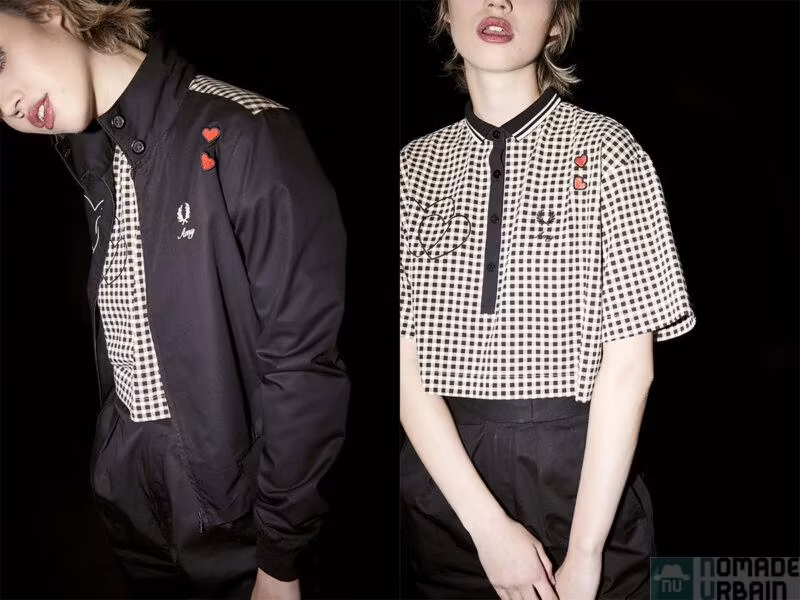 Cette collection est influencée par la silhouette sportswear et pin-up de la chanteuse. Ainsi que par la modernité de la « fille Fred Perry », qui combine les nuances stylistiques distinctives d’Amy. Ce qui la rend unique. La marque adapte le polo Fred Perry en y ajoutant une longue patte de boutonnage, un col, des poignets relevés. Elle intègre en plus des détails, comme le nom « Amy » brodé sous la couronne de laurier.