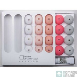 La Case de Cousin Paul propose toute une gamme de guirlandes lumineuses. La Gamme Premium se compose de boules finement tricotées. Vous pouvez composer les couleurs ou acheter des coffrets tout faits. Il suffit de clipser les boules à la guirlande à LED et cela se fait en un clic !
