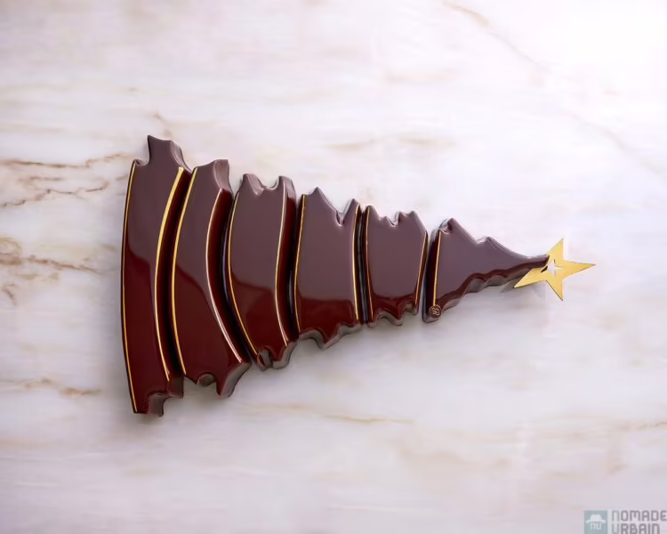 Sa pointe, en part individuelle, est à elle seule un charmant petit conifère de fête. Puis d’étage en étage, le voilà qui prend de l’ampleur pour devenir un sapin. À chacun de décider où sa gourmandise s’arrêtera et de calibrer le sapin selon la tablée le jour de Noël…