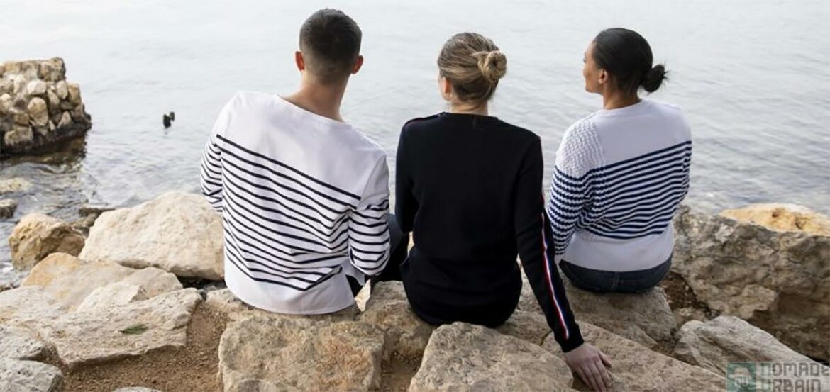 La collection comprend des pièces de mode comme Marinière Patrouilleur (59,00 €) en blanc et bleu ou la Marinière Porte-Avions qui se distingue d’une rayure rouge (105 €).