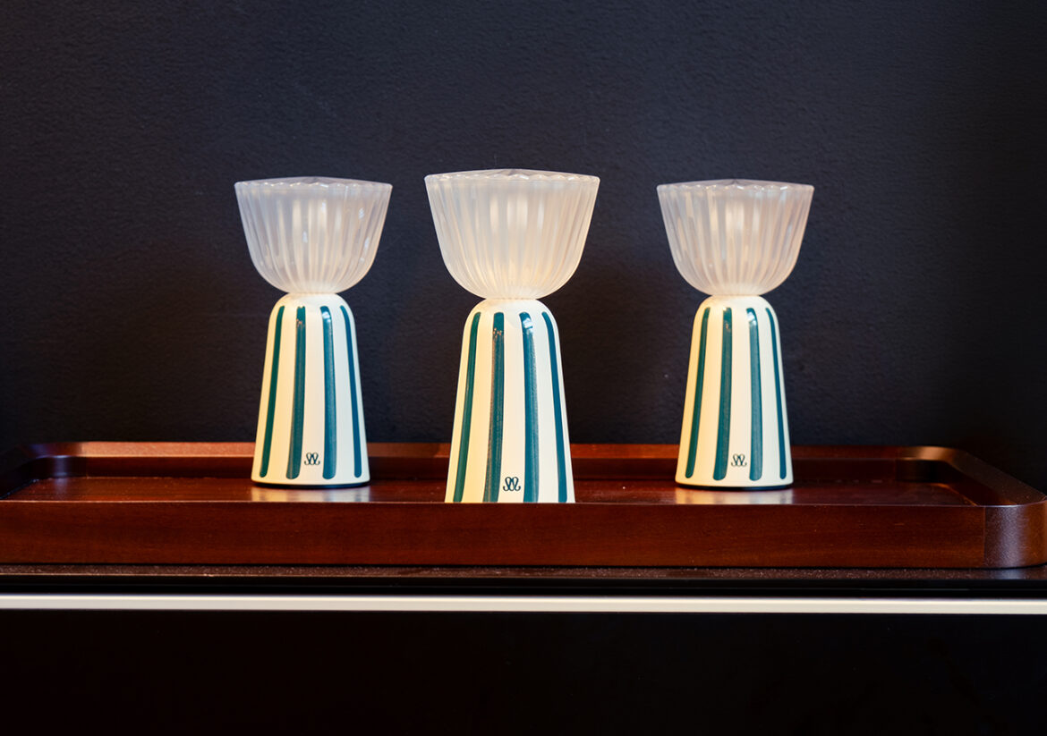 Une table de terrasse s’illumine d’un bleu rayé quand la nuit tombe doucement. Captant la lumière comme un soleil couchant, la lampe Swiing Sarah Lavoine x Fermob (sans fil et rechargeable), en édition limitée veut marquer la saison printemps-été 2026. Son geste basculant révèle un éclat feutré qui enveloppe terrasses et dîners estivaux d’une douceur addictive.