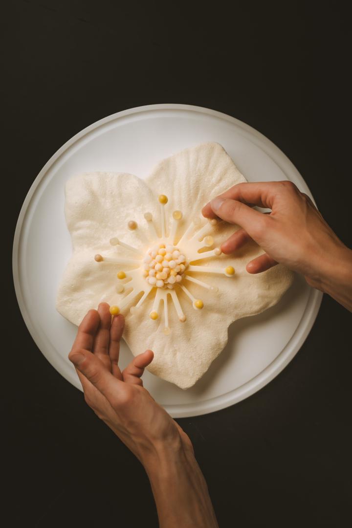 Le Royal Champagne Hotel & Spa célèbre cette fin d’année 2025 avec une création poétique signée par la Cheffe Pâtissière Claire Santos Lopes. La traditionnelle bûche de Noël délaisse sa forme classique pour adopter les traits d’une Hellébore. Cette fleur d’hiver rare symbolise l’élégance et la pureté. L’entremets déploie cinq pétales blancs immaculés qui rappellent la neige scintillante de la saison froide. Le cœur du dessert attire le regard tel un bijou précieux inspiré de la joaillerie. Il se compose d’un soleil d’étamines fait de perles gélifiées de miel, citron, amandes et pollen qui jouent avec la lumière.