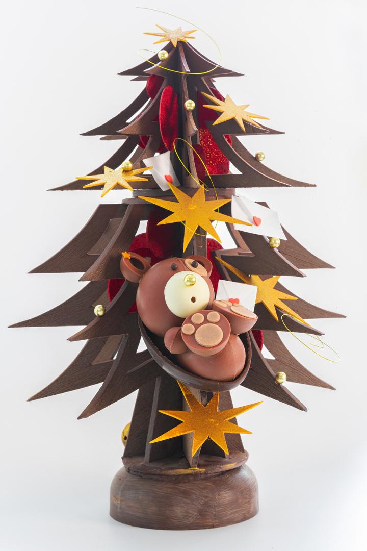 Le Chef Pâtissier Eddie Benghanem célèbre la magie des fêtes au Waldorf Astoria Versailles – Trianon Palace avec une création poétique. Sa bûche baptisée Étoile d’Hiver rend un hommage vibrant à l’esprit de Noël. L’œuvre prend la forme audacieuse d’un sapin stylisé aux lignes graphiques. Chaque élément en chocolat noir est découpé puis assemblé à la main pour garantir le caractère unique de la pièce. Cette structure architecturale abrite un petit ourson à croquer qui apporte une touche de tendresse immédiate à l’ensemble.