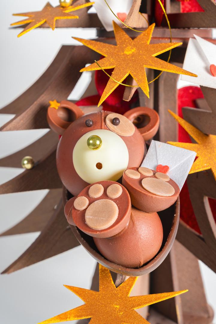 La structure impressionne par sa minutie technique. La locomotive seule nécessite l’assemblage manuel d’une cinquantaine de pièces en chocolat. Les finitions sont réalisées à la main. Des lignes dorées soulignent les roues ciselées. Le toit se pare d’une couche de guimauve. Cela imite la neige fraîchement tombée.