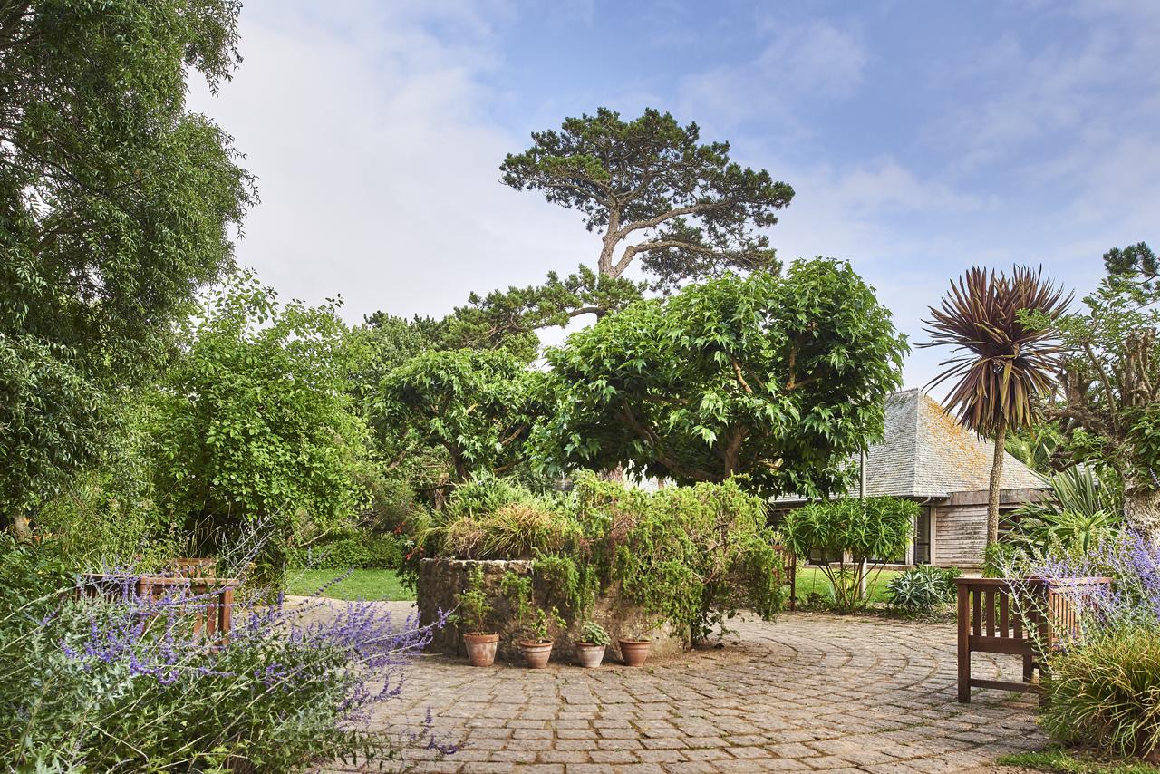 L’hôtel réunit 26 chambres dans trois maisons rénovées de l’île. Chacune avance sa propre ambiance, ce qui évite l’effet hôtel uniforme plaqué derrière des murs anciens. Ici, le décor ne cherche pas à surjouer l’insulaire. Il travaille plutôt par touches, en laissant la mer, les vieilles pierres et le calme faire le reste.