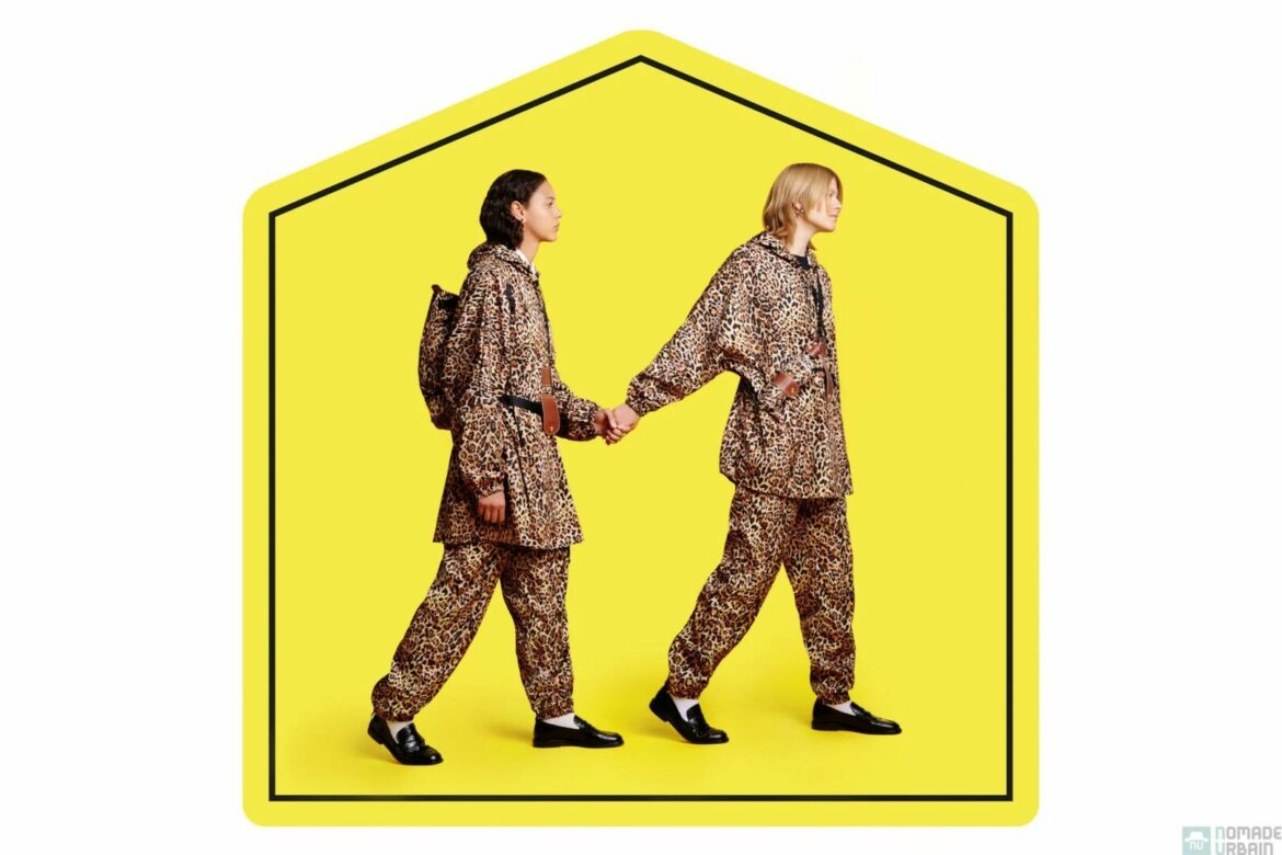 La maison française renouvelle sa collaboration avec la Belge Stéphanie D’Heygere pour concevoir une collection pratique et délicieusement ludique. Ainsi, la collection se compose de deux sacs, un parapluie, un poncho, un chapeau de pluie et un pantalon. Chacun partage la même idée ingénieuse, incorporer une fonction supplémentaire en plus de celle d’origine.