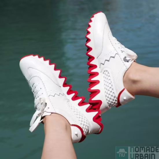 Élégant et provocateur, ce nouveau modèle incarne le savoir-faire esthétique et technique de la Maison. Mélangeant matières et couleurs, la Loubishark est dotée d’une tige technique de 13 pièces. Ce qui inclus des panneaux en daim, en gomme et en résille.