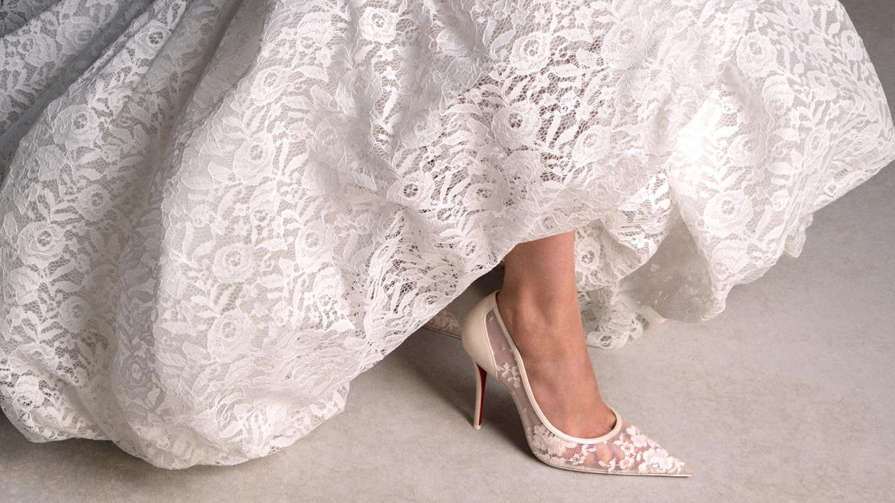 La force de Louboutin Bridal tient à sa hiérarchie très claire. Le mariage n’est pas traité comme un décor autour du soulier. Le soulier devient le point de départ, celui qui fixe la ligne, la hauteur et la démarche. C’est une manière simple de rappeler qu’une silhouette de cérémonie se lit aussi à hauteur de pied.