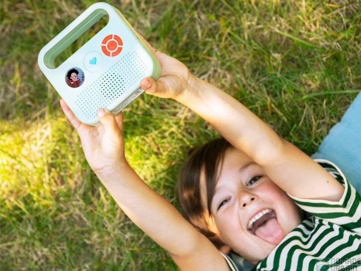 L’enceinte est conçue pour apporter aux enfants une expérience audio en toute autonomie. Elle se présente sous la forme d’une petite enceinte, au design enfantin. Elle affiche en plus un mini-écran de sélection des contenus, d’un bouton « Favori » en forme de cœur. Quatre flèches sont présentes pour une navigation très simple. La partie audio est l’œuvre d’Elipson, une marque française spécialiste de la Hi-fi.
