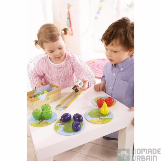 Mon premier verger est la version simplifiée pour les enfants de 2 ans du jeu Le Verger d’HABA. Le but est de partir à la cueillette des fruits en bois et surtout de les mettre à l’abri dans son panier. En effet, Théo, le petit corbeau effronté́, adore se délecter des fruits cueillis par les petits enfants !