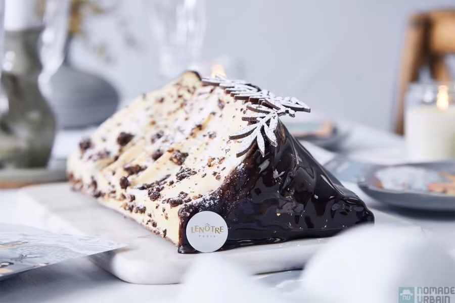 La maison Lenôtre poursuit son exploration des traditions festives françaises en explorant cette fois-ci la Provence. Ici, la montagne Sainte-Victoire inspire le Directeur de la Création Guy Krenzer et le Chef Pâtissier Jean-Christophe Jeanson. Une Montagne à deux faces, réinterprétées ici en deux décors distincts, un côté enneigé et poudré, l’autre brillant d’un intense glaçage au chocolat.