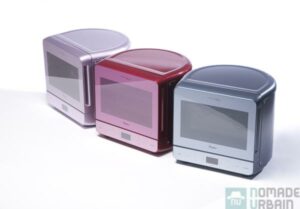 Une jolie forme, arrondie dans le dos, et un effort a été réalisé sur la façade qui me fait plus penser à un téléviseur qu’à un four. Surtout avec ses commandes sensitives juste sous la porte. Il offre une capacité de 13 L et un plateau de 28 cm de diamètre, équivalent à celle d’un 23 L classique. Pourtant, il occupe 25 % de volume en moins, il est donc plus facile à caser.