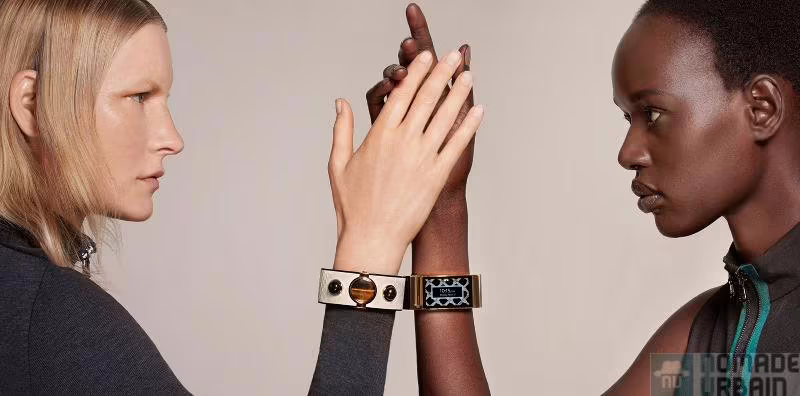 Cet accessoire de mode 100 % féminin est un bracelet assez imposant offrant un placage or 18 carats, avec un écran tactile courbe en verre de saphir. Il existe en peau de serpent d’eau noire, des perles de Chine, et des lapis de Madagascar, et même une déclinaison en peau de serpent d’eau blanche. Un œil de tigre d’Afrique du Sud, et une obsidienne de Russie finalise le profil de ce bracelet étonnant.