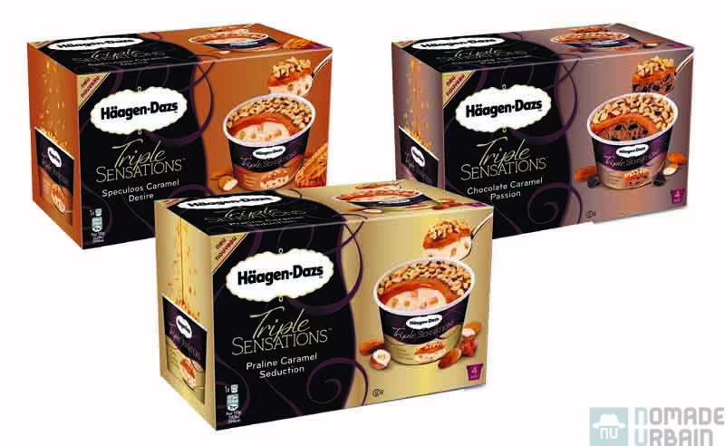 Jusqu’à présent, l’offre de Häagen-Dazs en magasin est plaisante, mais reste assez éloignée de l’expérience que nous pouvons savourer en boutique. Consolez-vous avec sa nouvelle collection « Triple Sensations ». Le principe est simple : offrir 3 couches, 3 textures et 3 saveurs différentes dans un même pot. Ainsi, les crèmes glacées sont mises en valeur avec des sauces fondantes et des toppings craquants.
