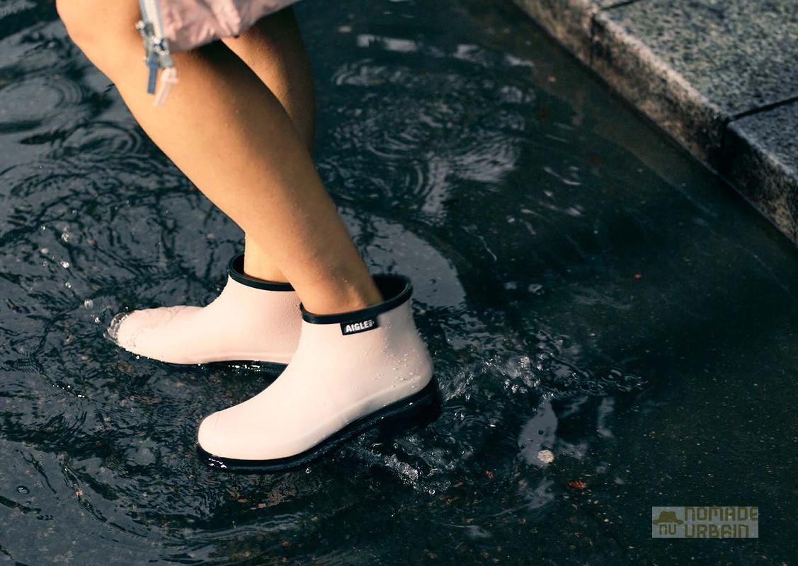 Pour un total look anti-pluie, Aigle associe la RainPack aux boots FulFeel Low. Ces bottes basses en caoutchouc, fabriquées à la main en France, allient confort et résistance. Leur tige souple et leur semelle crantée offrent une bonne adhérence, même sur sol mouillé.