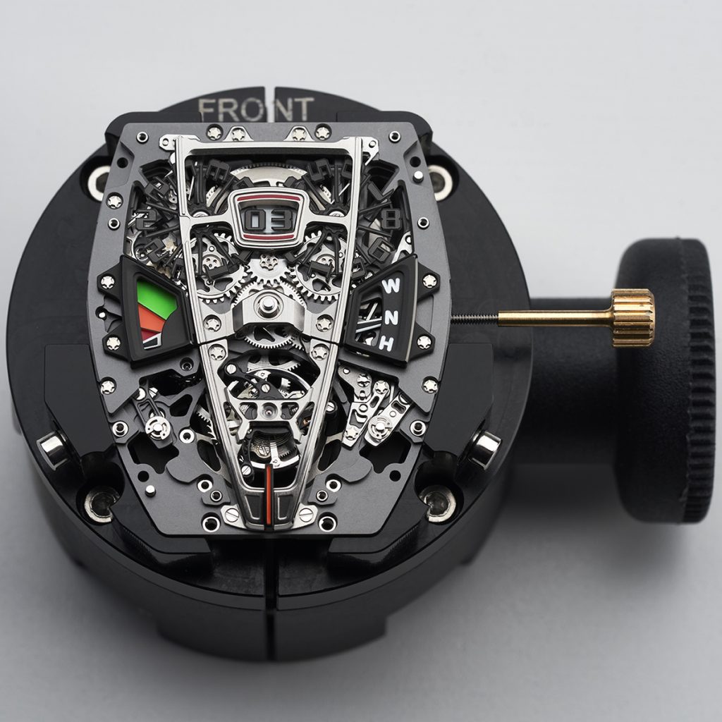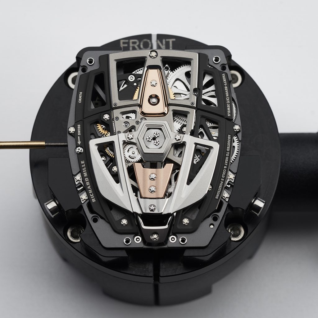 L’extraordinaire anatomie du boîtier n’empêche pas Salvador Arbona, directeur technique mouvement chez Richard Mille, de concevoir un véritable « moteur » horloger. Qui occupe parfaitement tout l’espace disponible. Un mouvement d’un tel niveau de sophistication mécanique, qu’il fait de la RM 40-01 le compagnon idéal de la Speedtail.