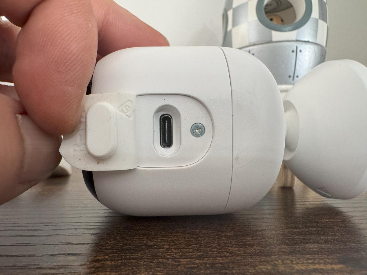 Contrairement aux modèles plus haut de gamme, le boîtier n’est pas démontable : impossible d’accéder à la batterie. Arlo joue ici la simplicité, quitte à sacrifier un peu la flexibilité. À l’arrière, une simple vis permet de fixer le support mural. Et bonne surprise : le port de charge, dissimulé sous un cache en caoutchouc, est désormais en USB-C. Fini la connectique propriétaire.