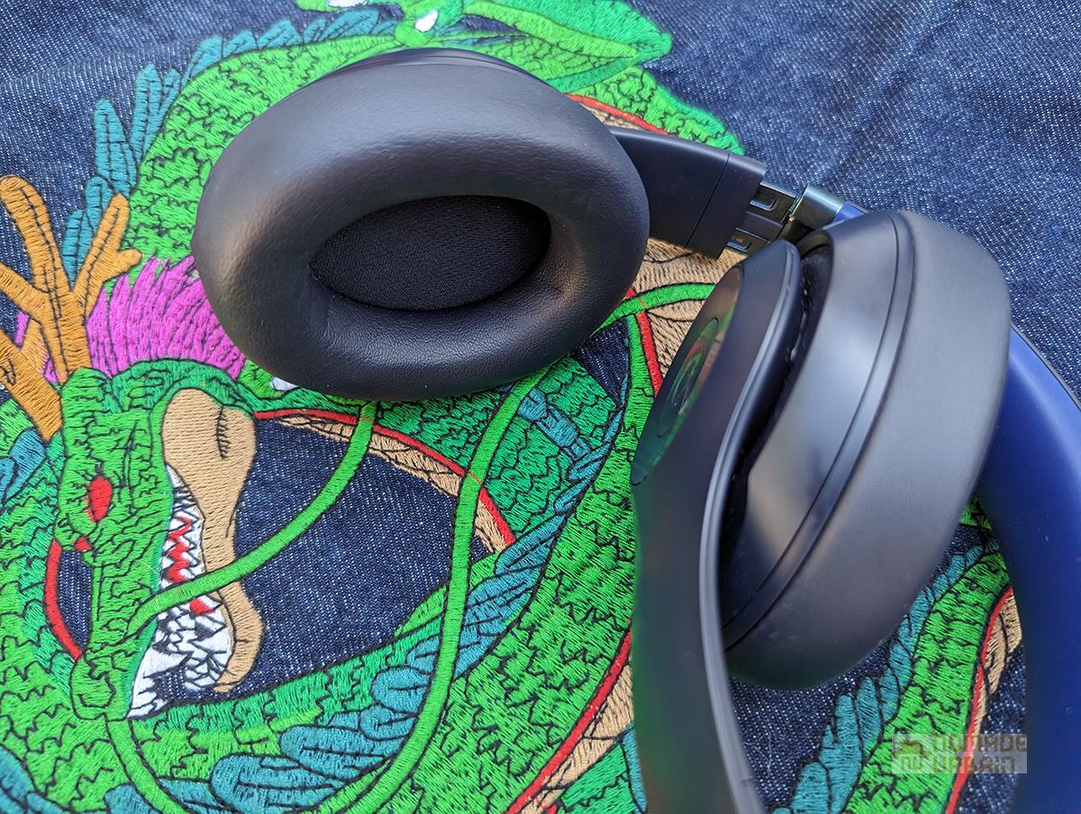 Les coussinets à mémoire de forme, recouverts d’un similicuir doux, ajoutent au confort. Le Beats Studio Pro peut se plier au niveau des écouteurs. Mais ils ne sont pas rotatifs, dommage pour le rangement plat.