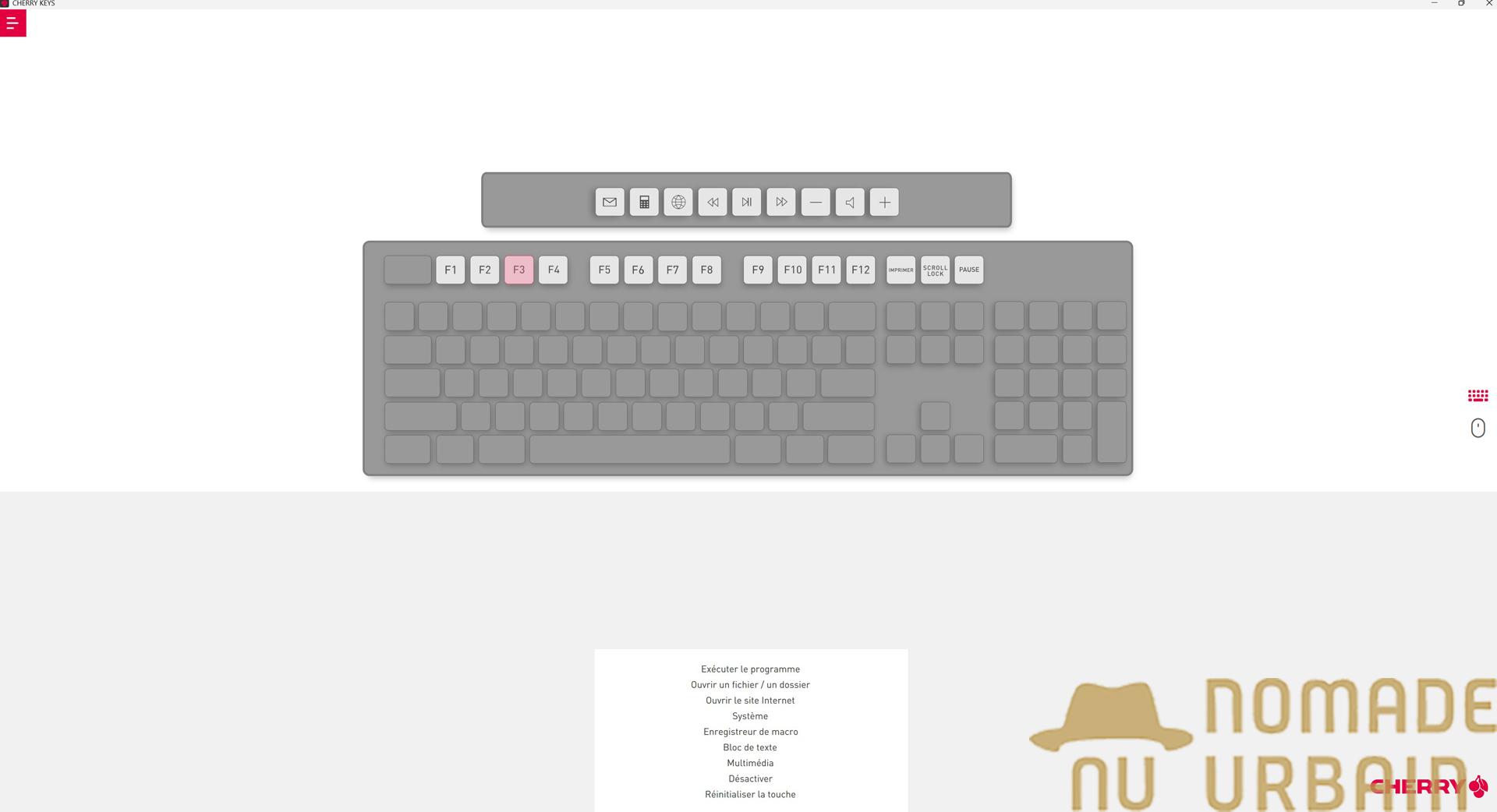 La même application doit, en théorie, prendre en charge le clavier. Cela marche parfois, mais pas toujours, et surtout cela se limite à une mise à jour que nous n’avons jamais réussi à installer. Nous avons finalement opté pour l’utilitaire Cherry Key.