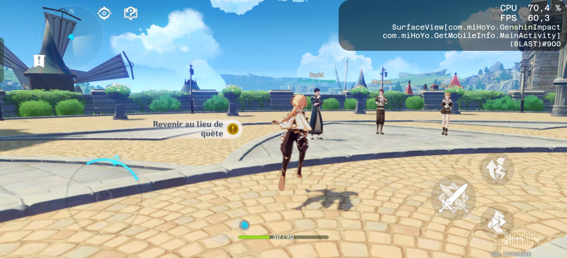 Sur des jeux plus gourmands comme Genshin Impact, le GT 6 s’en sort très bien. En mode Maximum, le jeu atteint entre 58 et 60 fps. En réduisant les paramètres, le jeu se stabilise à 60 fps.