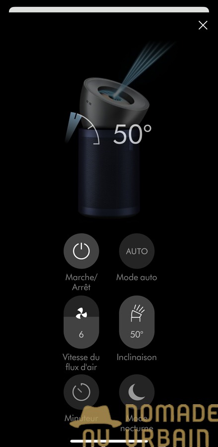 L’application reproduit fidèlement toutes les fonctions de la télécommande physique : réglage de la vitesse, activation du mode automatique ou nuit, verrouillage parental, etc. En complément, vous pouvez ajuster l’angle de diffusion de l’air, même s’il ne s’agit pas d’une oscillation au sens classique. Il est aussi possible de programmer des plages d’utilisation à l’avance, pour adapter le fonctionnement de l’appareil à votre rythme de vie.