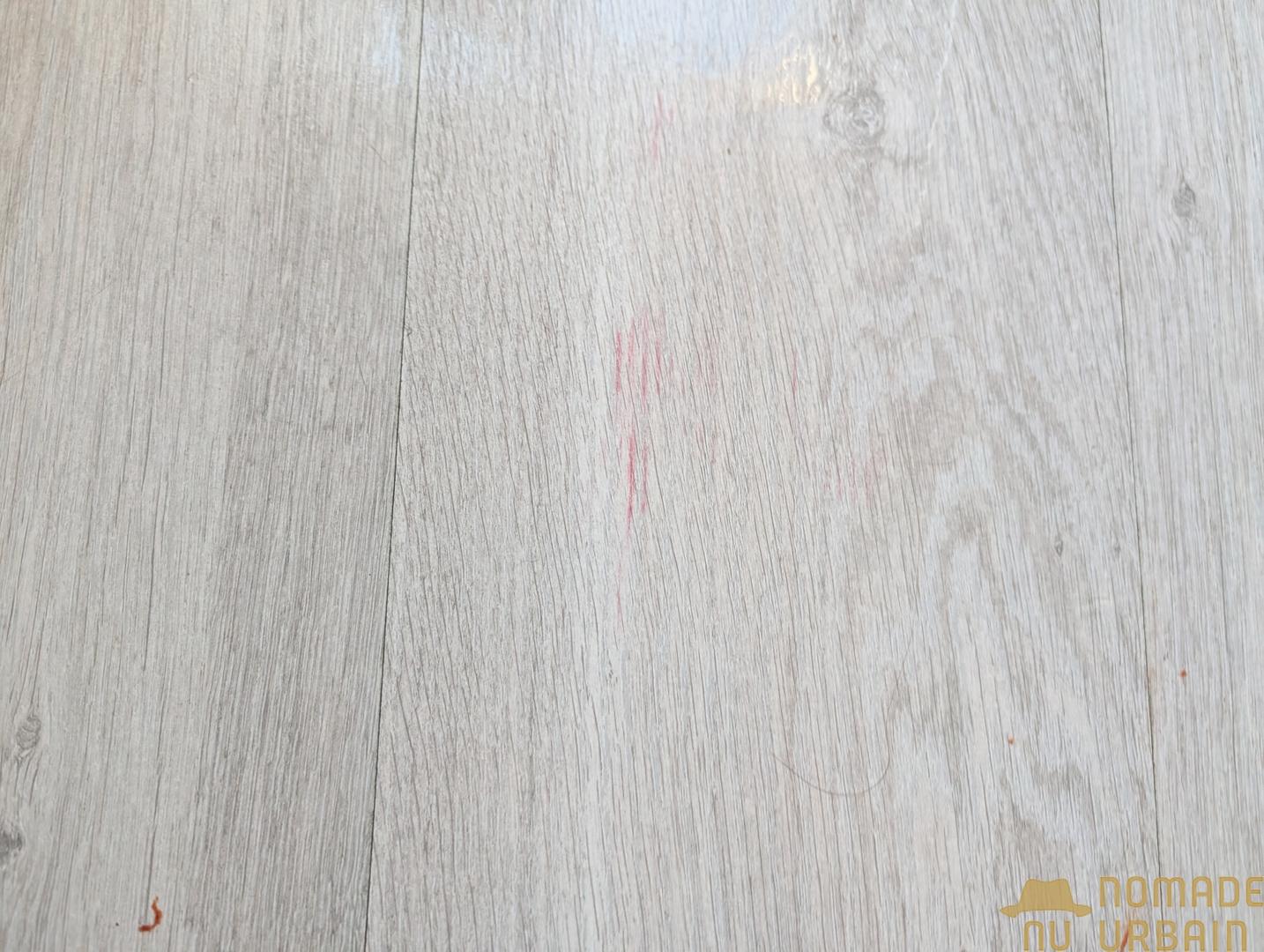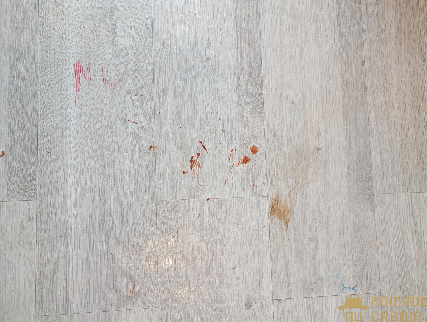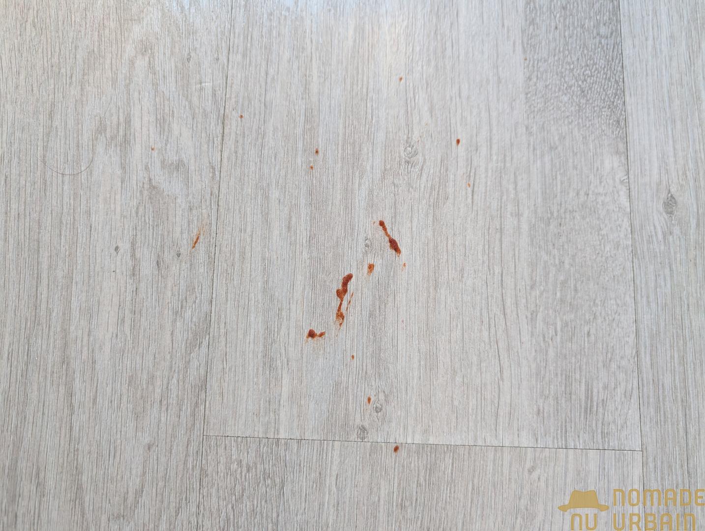 Comme vous pouvez le voir, le maquillage a juste été écrémé, il reste des taches solides de ketchup et, si le cola a été totalement éliminé, il reste un léger effet collant au sol. Quant au café, les traces les plus sèches sont toujours visibles. Nous passons donc au niveau d’humidification 2.