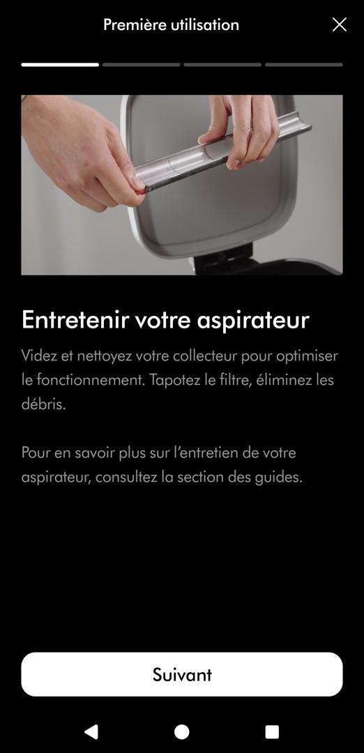 Cela nous donne accès à des informations sur les derniers usages, comme le temps d’aspiration. Vous avez aussi accès à toute une série de tutoriels vidéo sur l’usage et l’entretien.