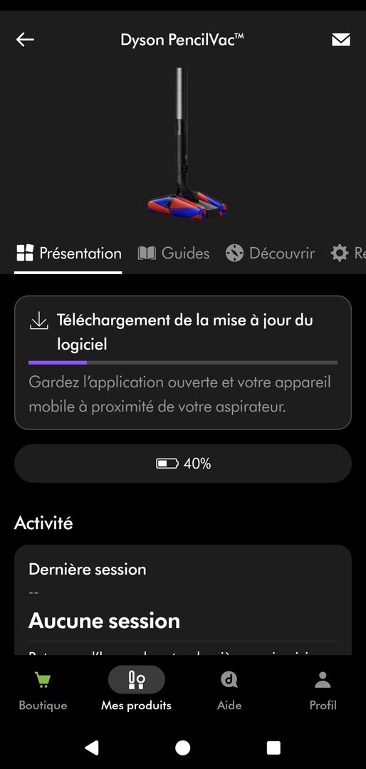En passant par l’application Dyson, nous pouvons sans difficulté aucune appairer un smartphone au PencilVac.