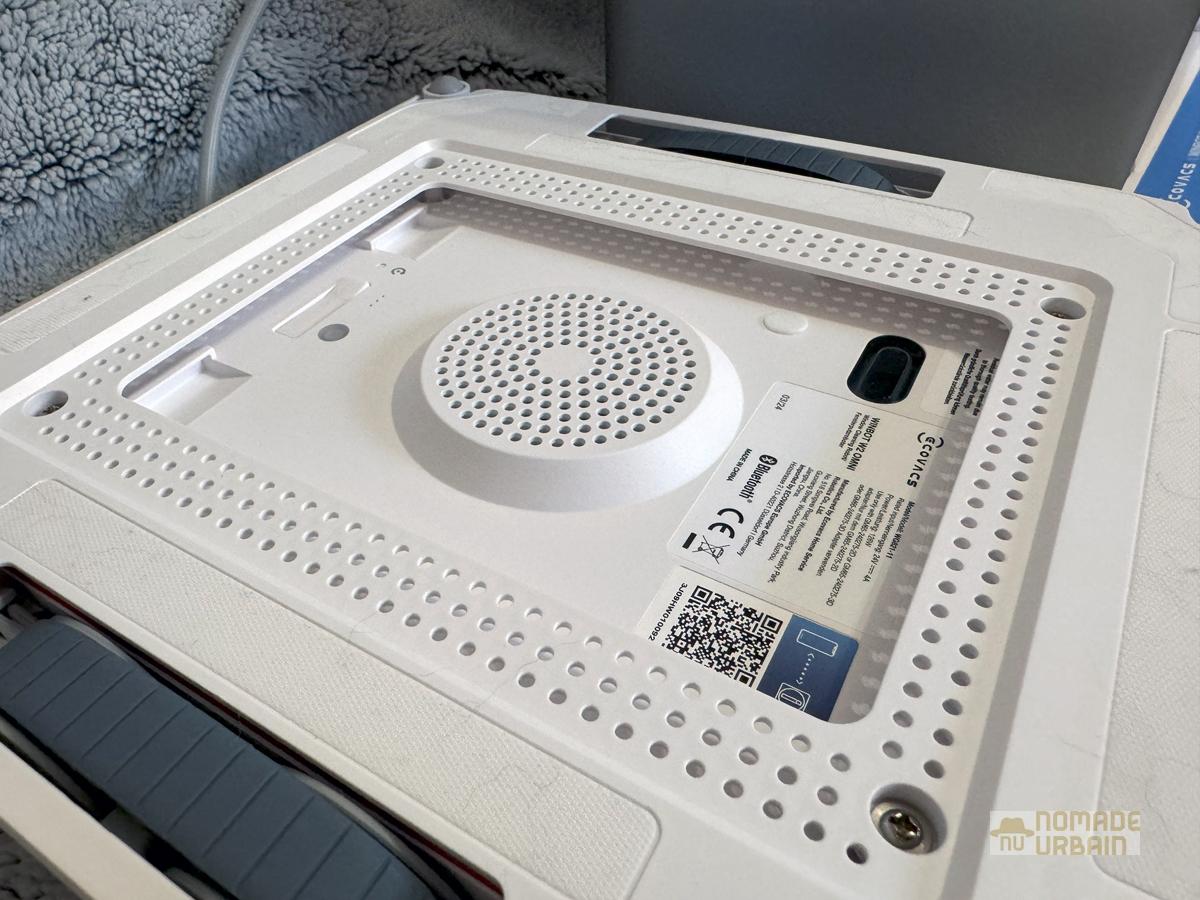 L’Ecovacs W2 Omni se présente sous la forme d’un ensemble en deux parties. Avec en premier lieu une mallette de transport élégante et pratique, majoritairement blanche avec des accents argentés. La mallette dispose d’une grande poignée qui en facilite le transport. Elle mesure 31,2 x 21,5 x 32,7 cm et pèse 7,5 kg. Ce qui la rend aisément déplaçable d’une pièce à l’autre sans trop d’effort.