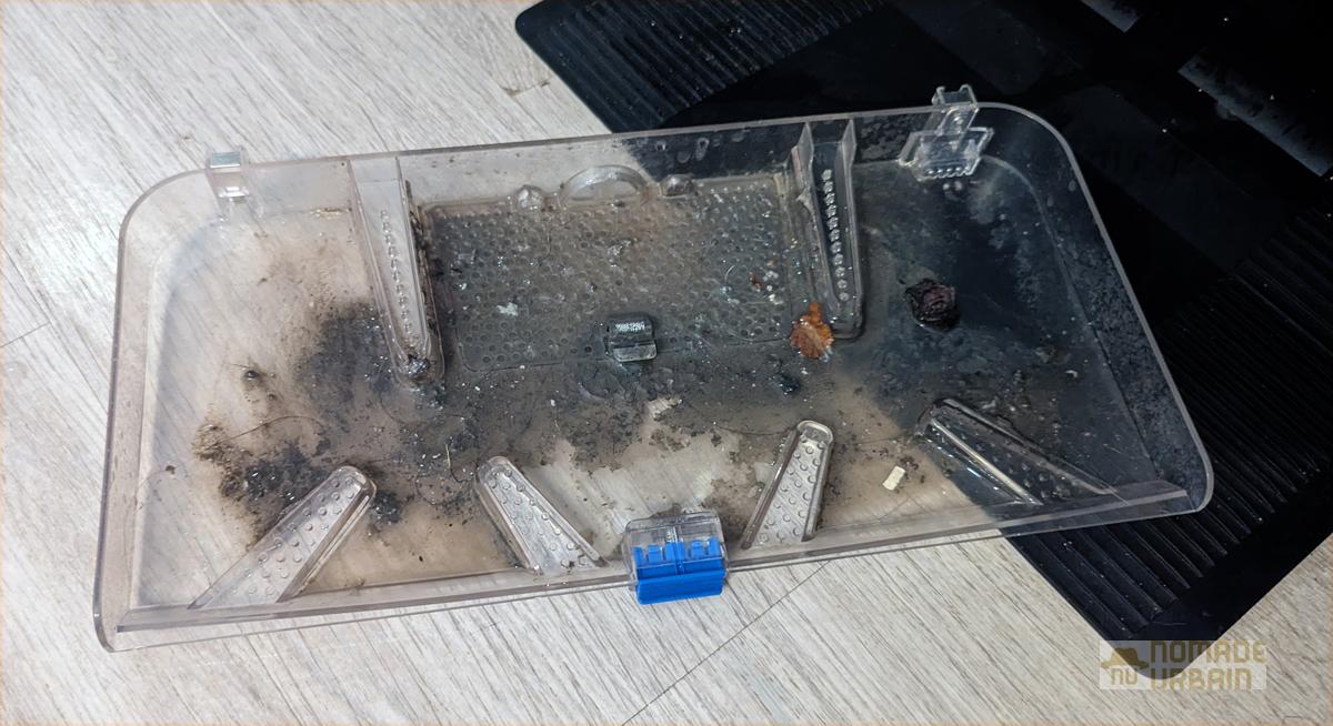 La rampe du robot se salit rapidement, la couleur noire n’est plus un avantage ici. La zone de nettoyage des patins est amovible, ce qui permet de la nettoyer facilement. Réalisez cette opération au moins une fois toutes les deux semaines. Plus fréquemment si votre domicile accueille des enfants ou des animaux.