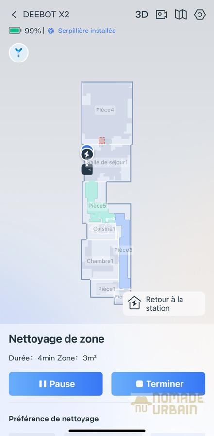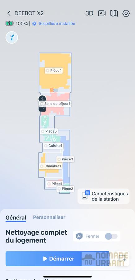 Application du Ecovacs Deebot X2 Omni : Claire et efficace