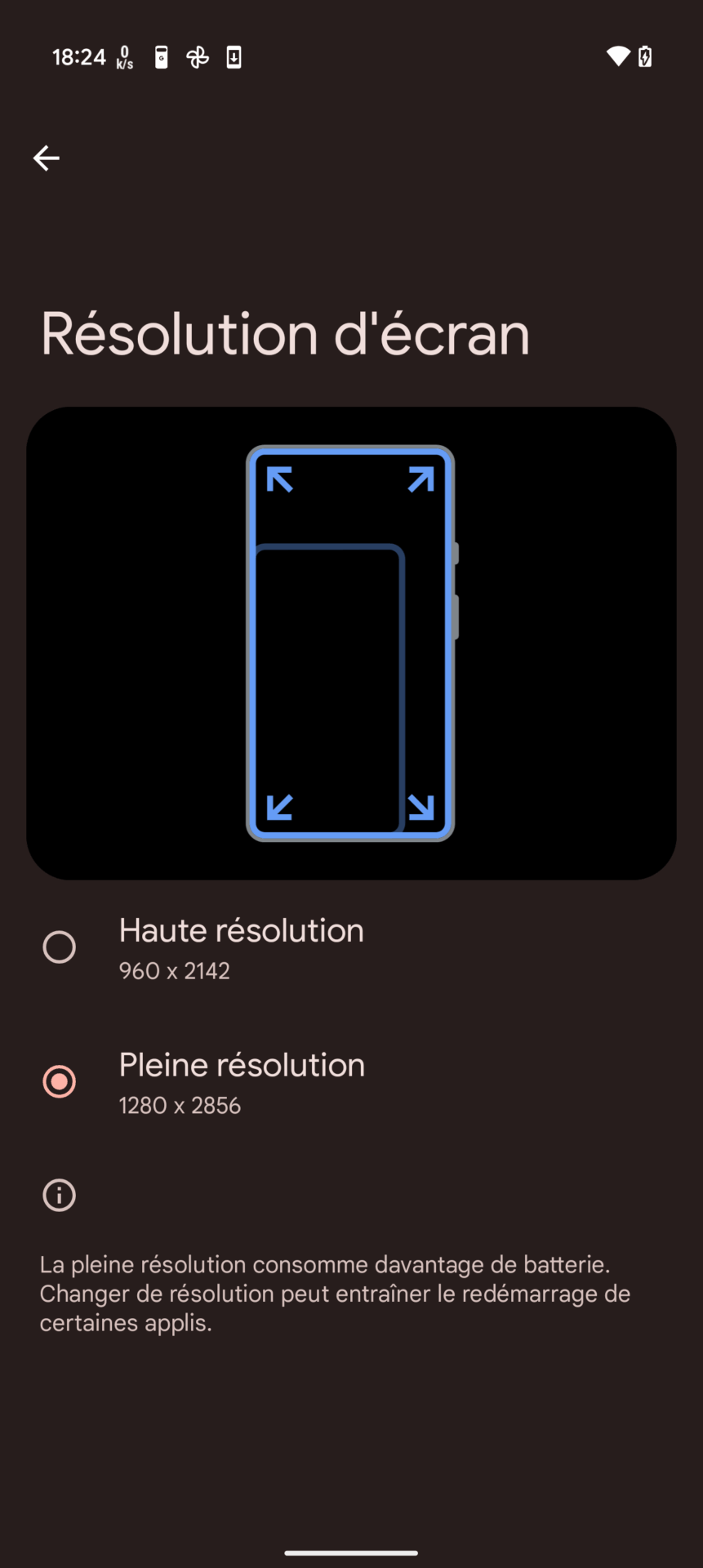 Difficile de ne pas être séduit par l’écran du Pixel 9 Pro. Il s’agit d’une dalle OLED LTPO de 6,3 pouces, avec un taux de rafraîchissement dynamique de 1 à 120 Hz selon les usages. L’affichage est précis, avec une définition de 1280 x 2856 pixels, soit une densité de 462 ppp (pixels par pouce).