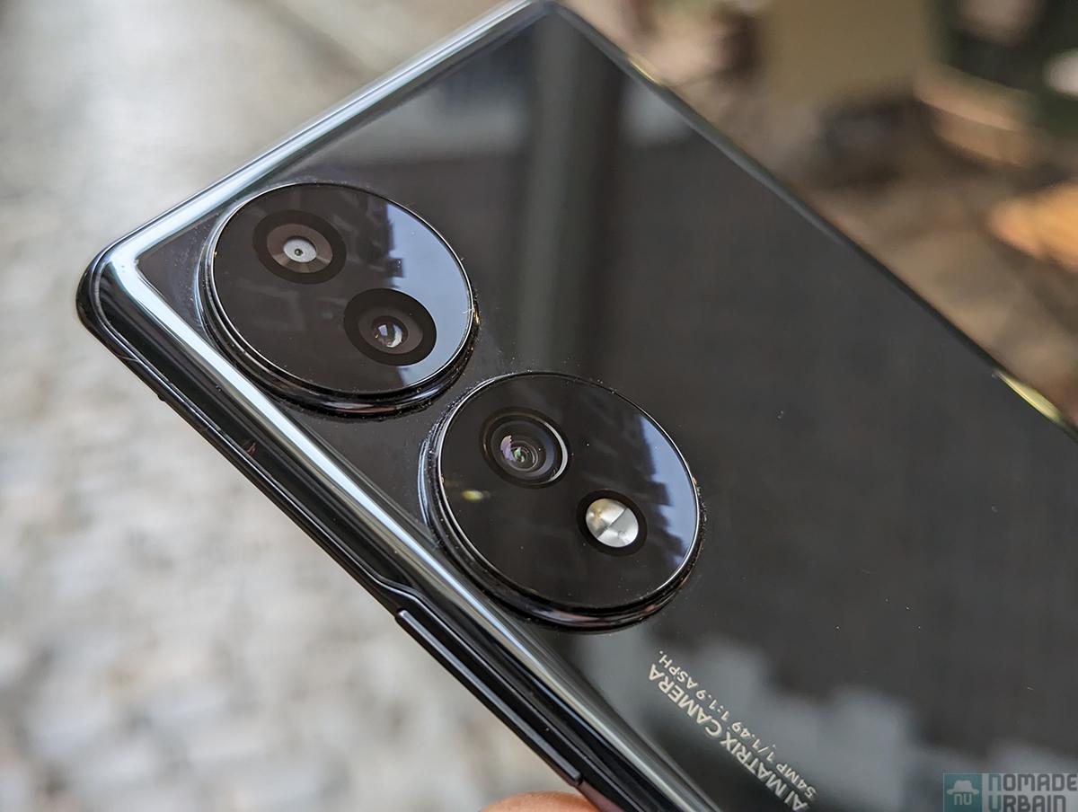 Nous avons deux blocs optiques circulaires, pas trop épais, mais tout de même présents. Cela reste esthétiquement réussi, mais à plat le mobile sera déséquilibré. Évitez de le poser sur une surface non plane.