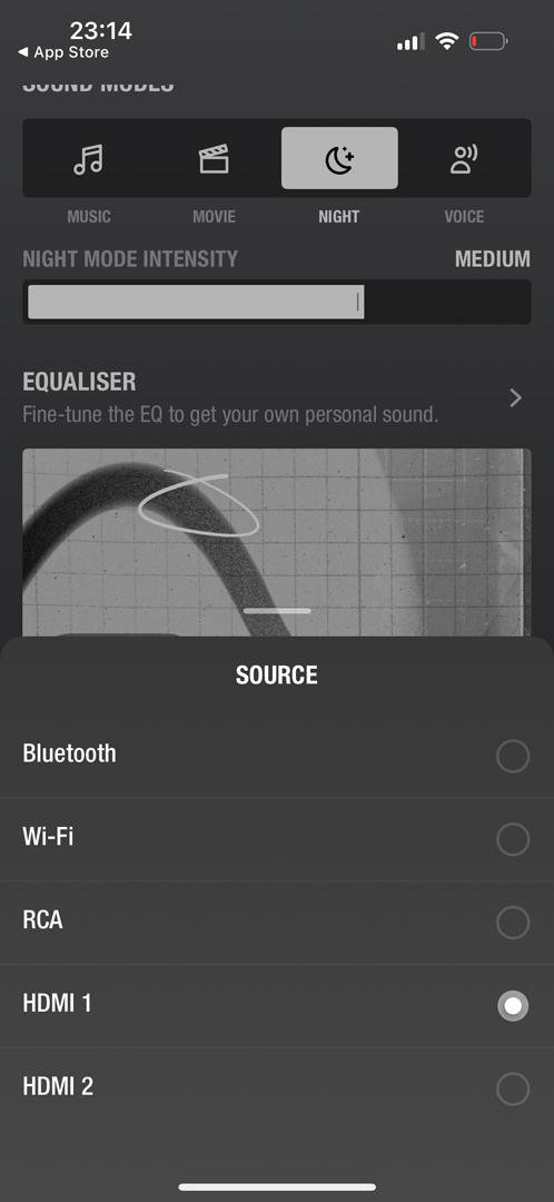Nous sommes globalement satisfaits de l’expérience applicative. Toutefois, nous avons quelques petits temps de latence durant l’usage, épisodiques mais taquins quand ils arrivent. Reste que l’absence de télécommande peut déstabiliser au quotidien, cela reste plus rapide que de prendre son smartphone, lancer l’application et baisser le volume. Bon point, l’eARC permet de gérer le volume à partir de la télécommande de son téléviseur ou box internet.
